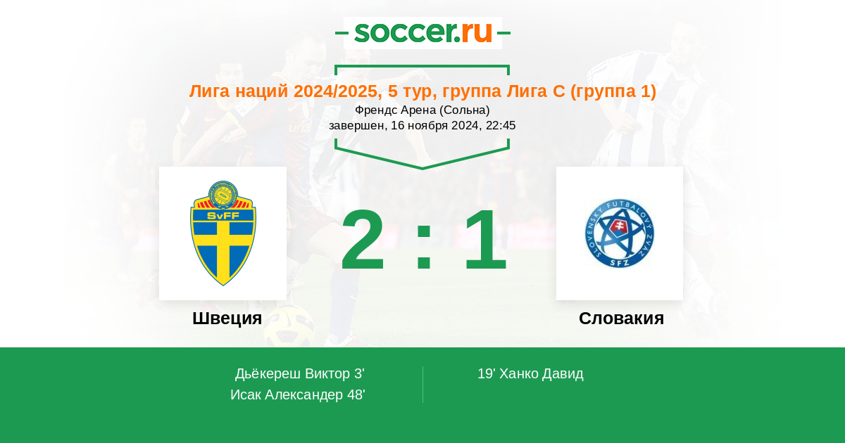3' (1:0) Дьёкереш Виктор (17) (Исак Александер (9))