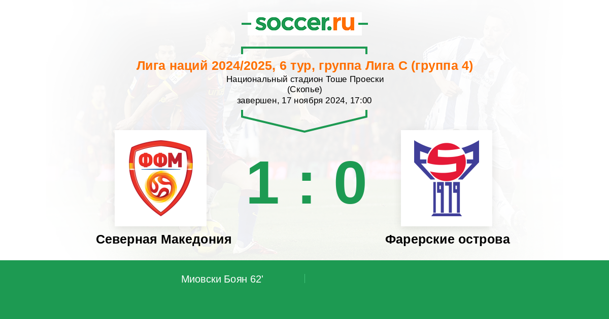 Протокол матча Северная Македония против Фарерские острова