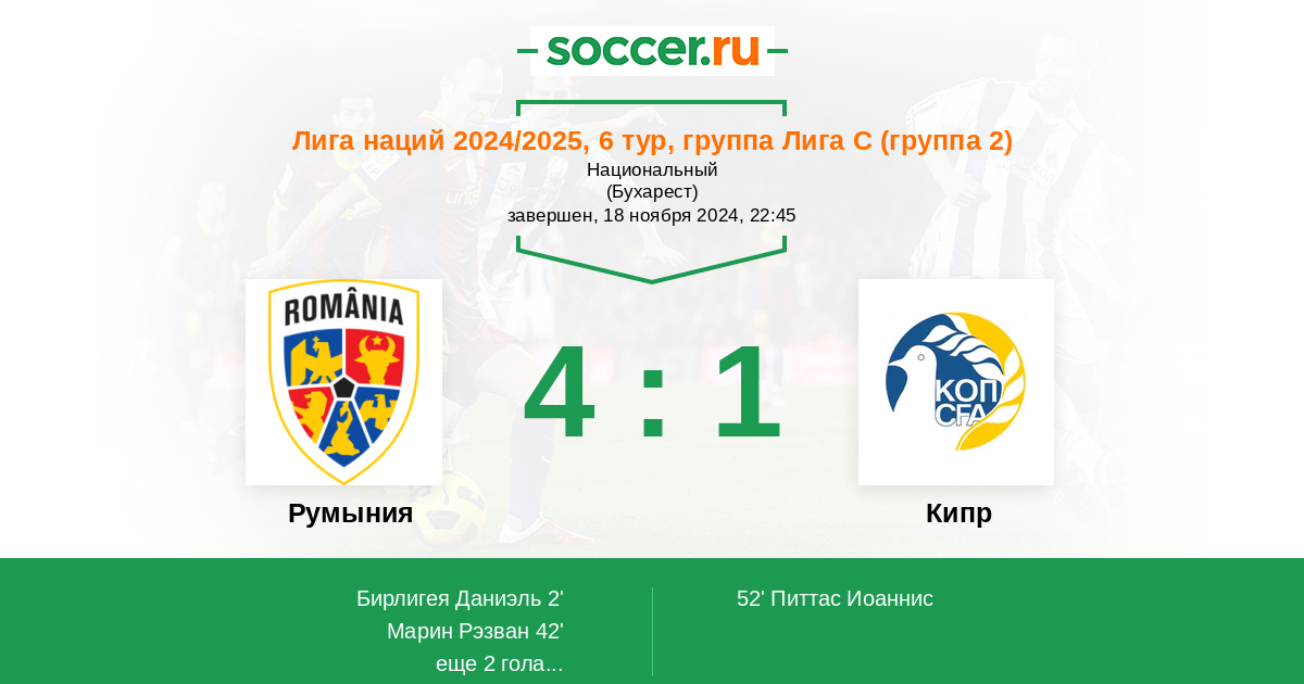 Протокол матча Румыния против Кипр