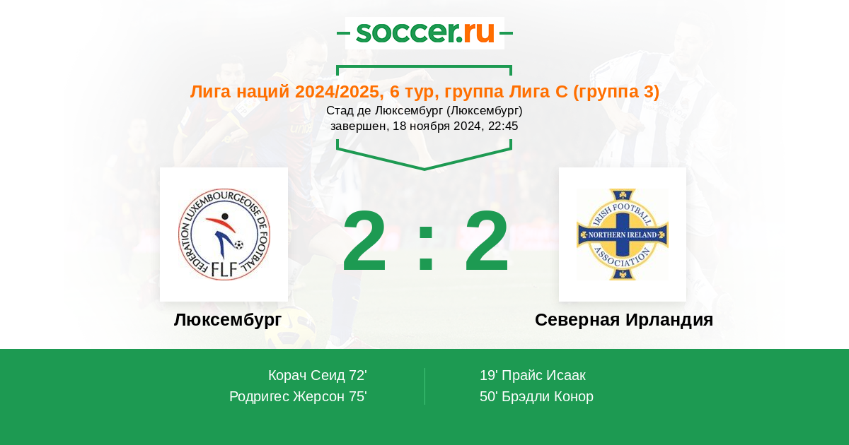Протокол матча Люксембург против Северная Ирландия