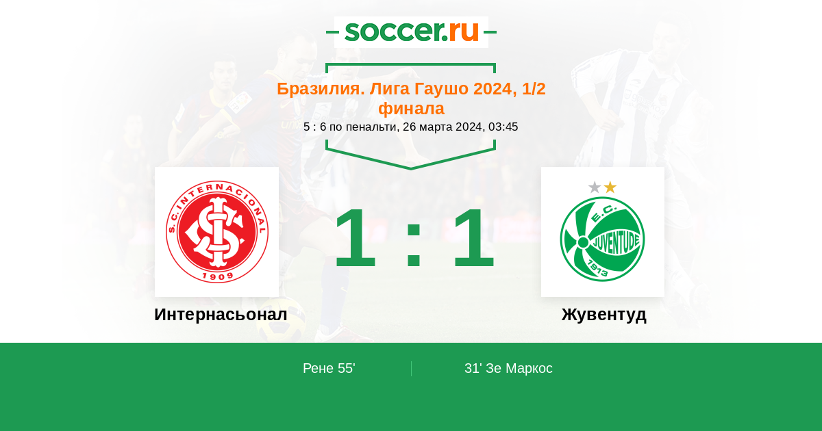 Протокол матча Интернасьонал против Жувентуд