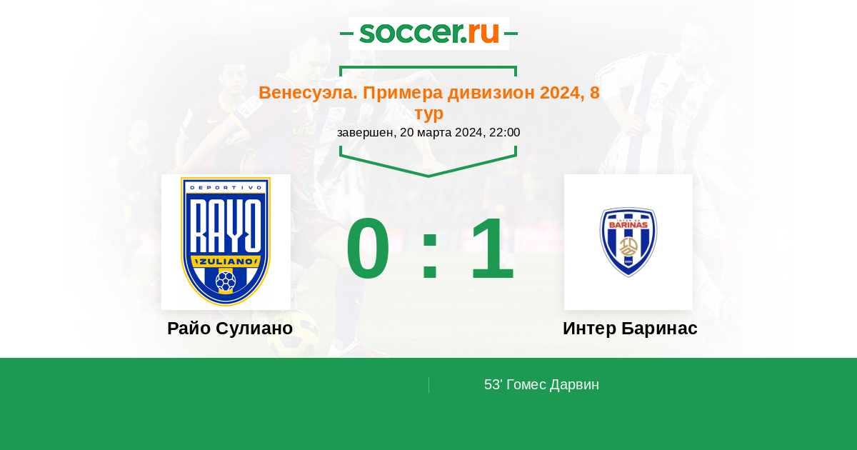 Протокол матча Райо Зулиано против Интер Баринас