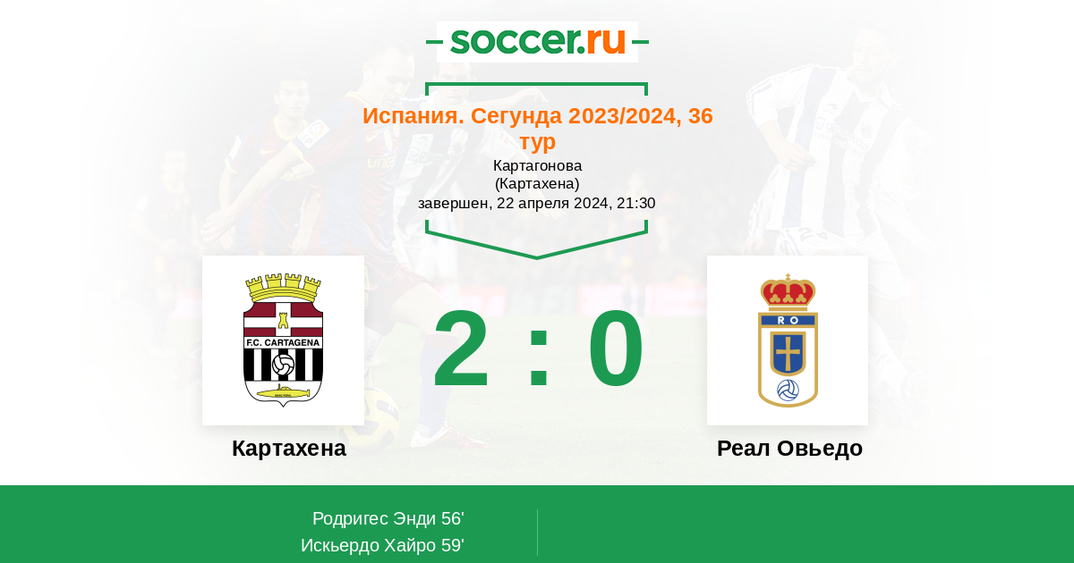 Протокол матча Картахена против Реал Овьедо