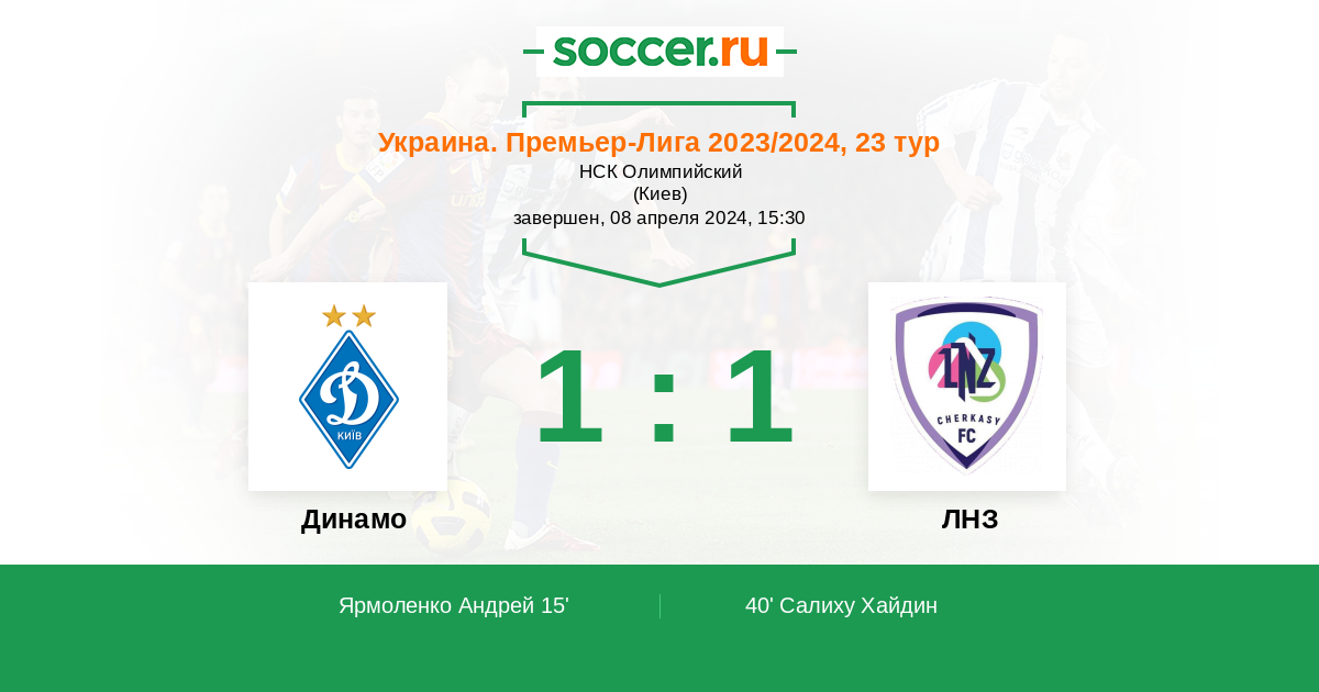 Протокол матча Динамо против ЛНЗ