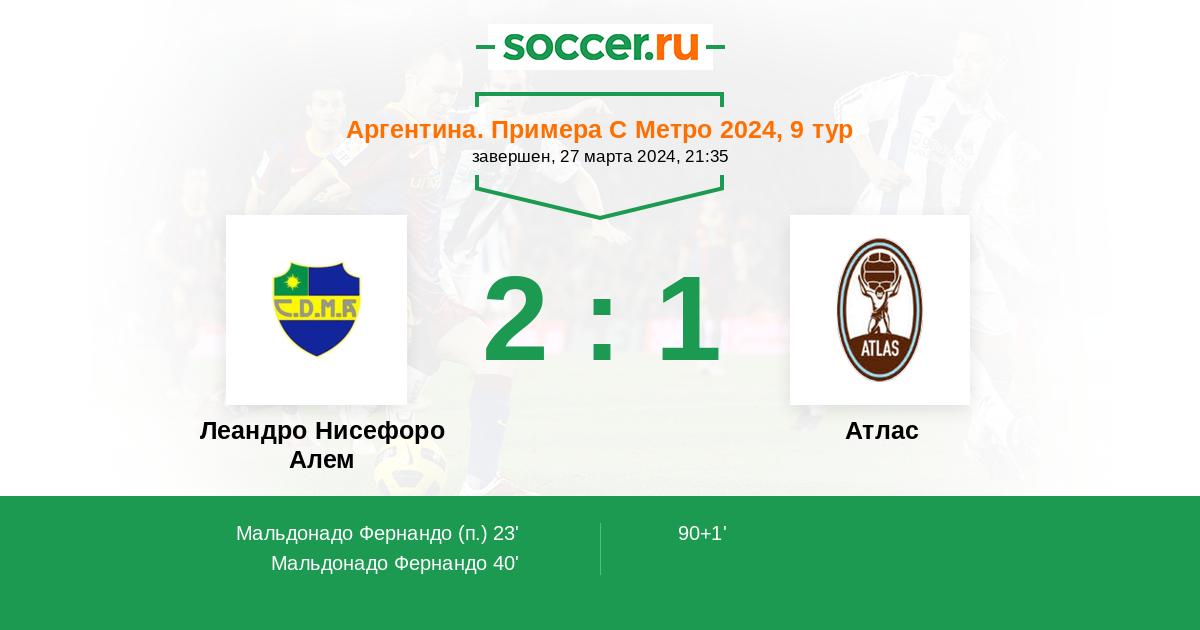 Протокол матча Леандро Нисефоро Алем против Атлас
