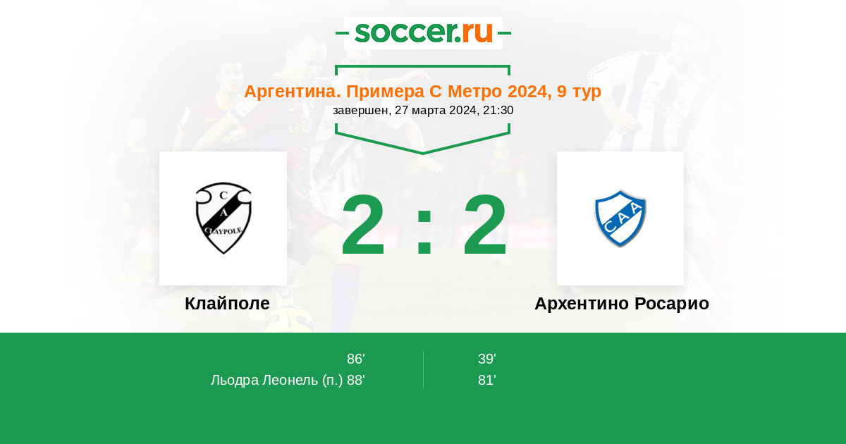 Протокол матча Клайполе против Архентино Росарио