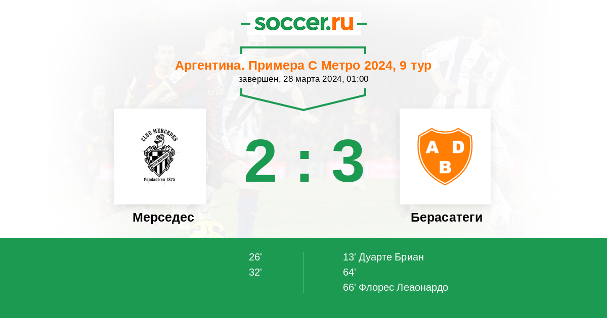 66’ 2:3 Флорес Леаонардо
