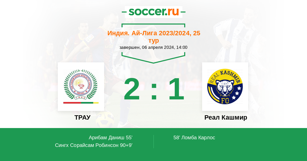 Замена90+4' Арибам Даниш (18) уходит с поля, Сингх Лайшрам (15) вышел на поле