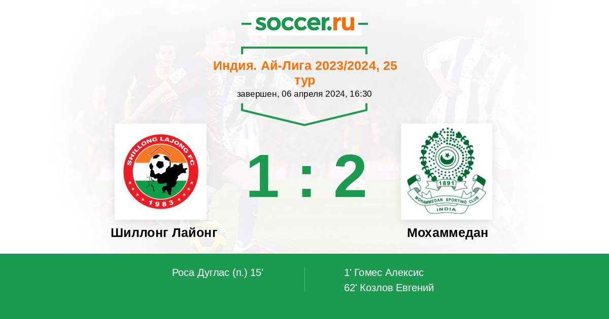 Протокол матча Шиллонг Лайонг против Мохаммедан