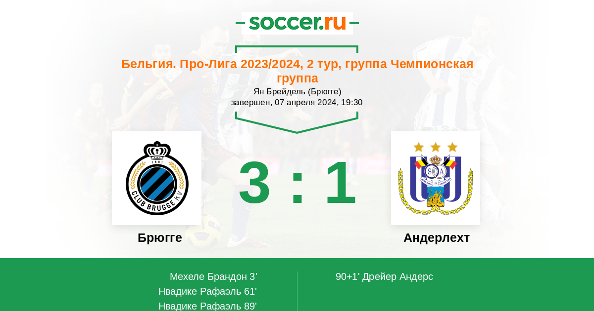 Протокол матча Брюгге против Андерлехт