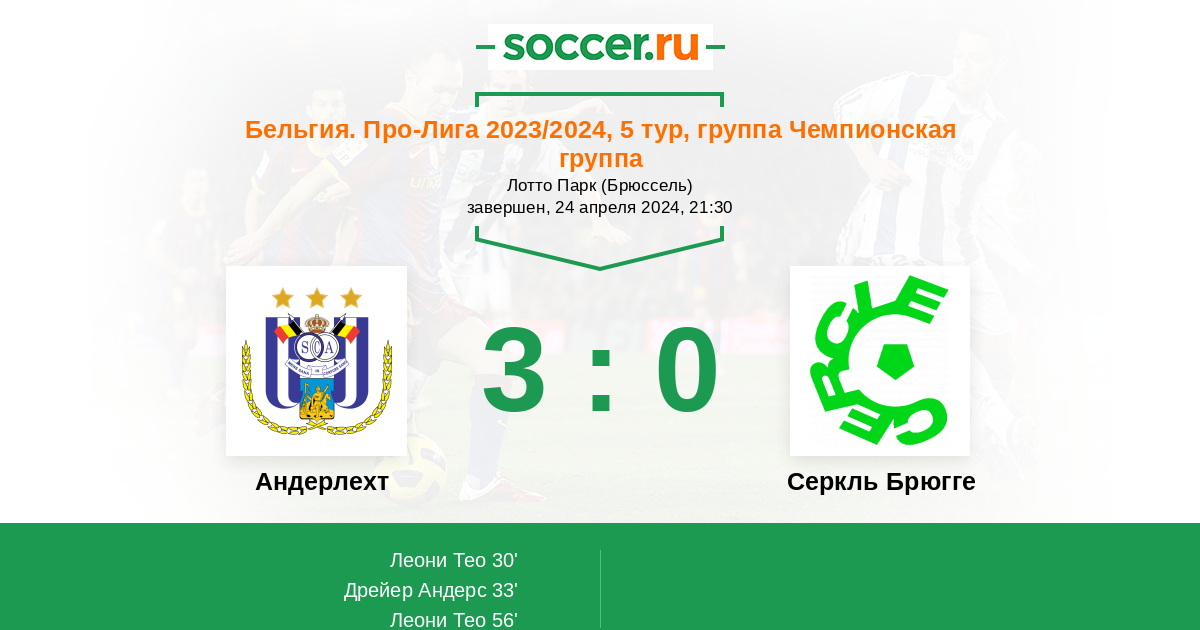 Протокол матча Андерлехт против Серкль Брюгге