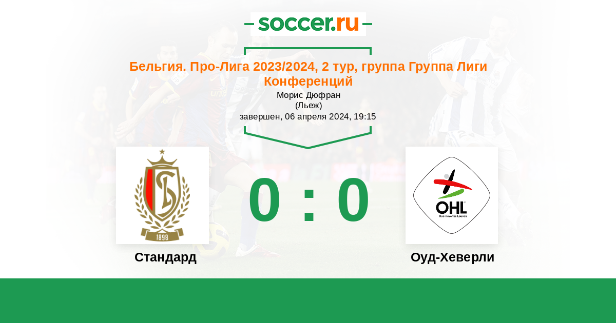 Протокол матча Стандард против Оуд-Хеверли