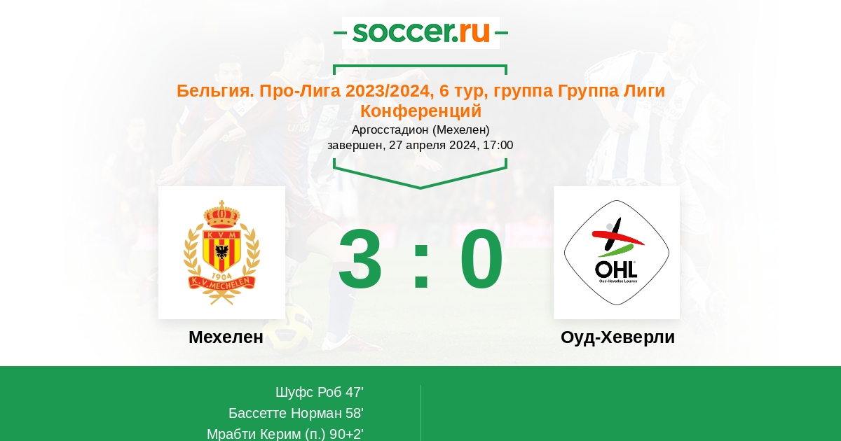 Протокол матча Мехелен против Оуд-Хеверли