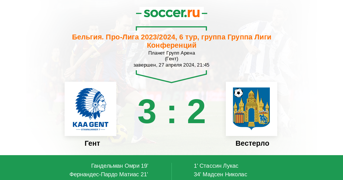 Протокол матча Гент против Вестерло