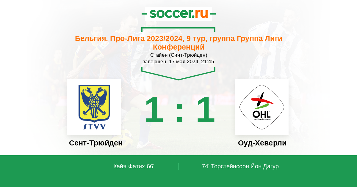 Протокол матча Сент-Трюйден против Оуд-Хеверли