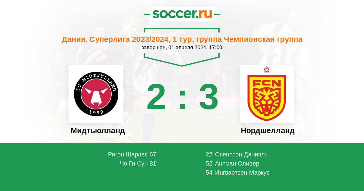 Протокол матча Мидтьюлланд против Нордшелланд