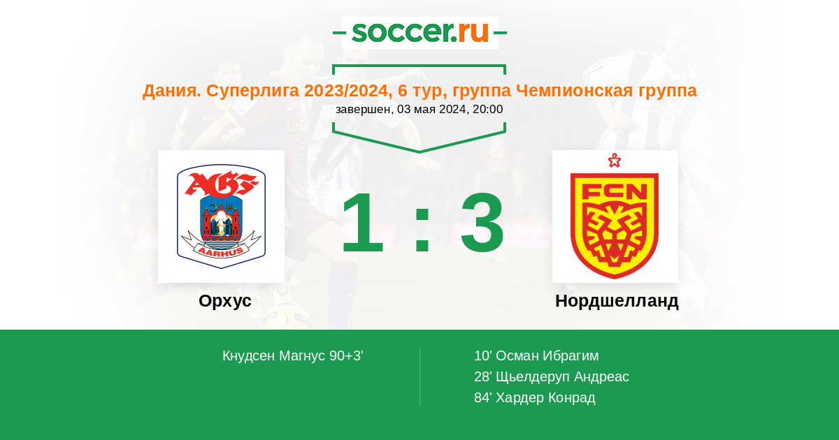 Протокол матча Орхус против Нордшелланд