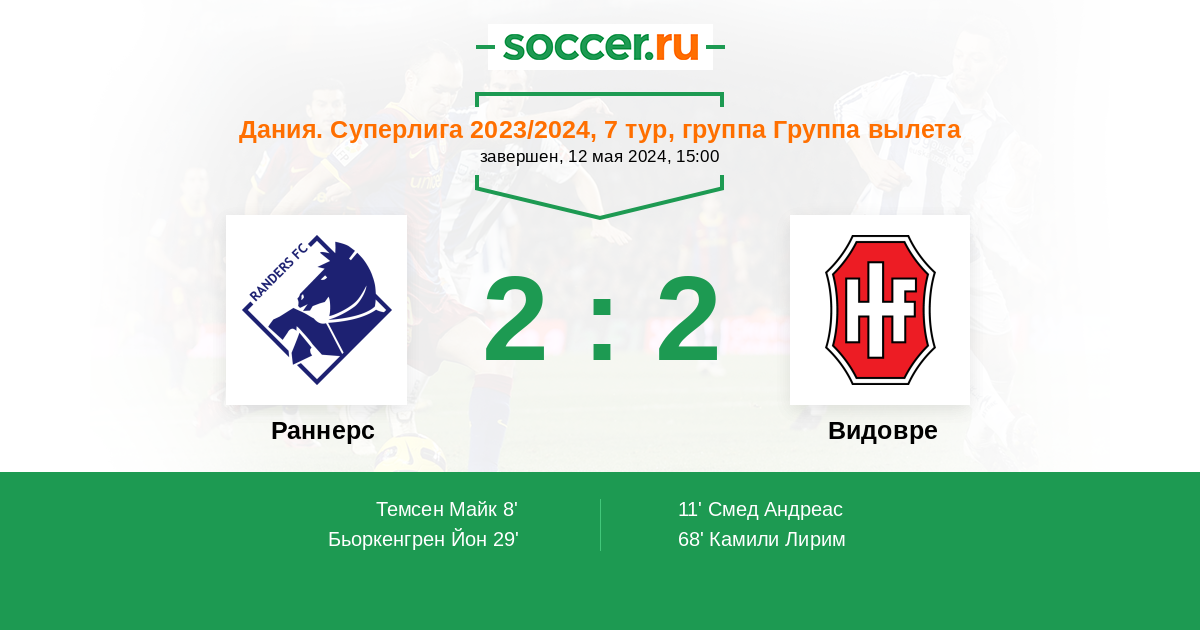 11' (1:1) Смед Андреас (22) (Томсен Тобиас (9))