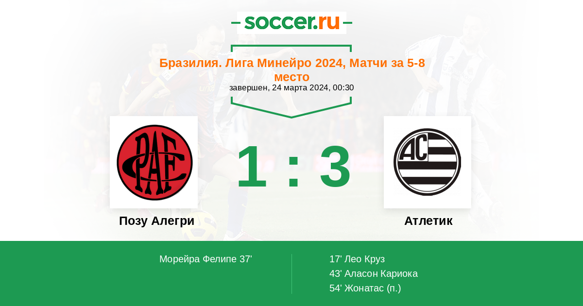 Протокол матча Позу Алегри против Атлетик