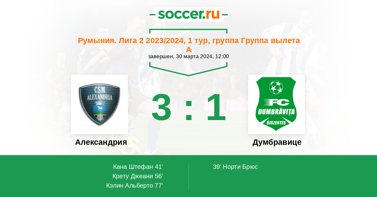 Протокол матча Александрия против Думбравице
