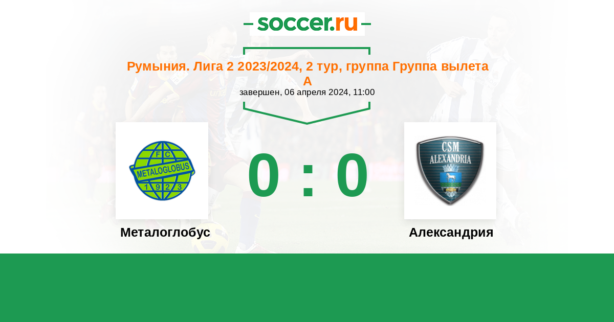 Протокол матча Металоглобус против Александрия