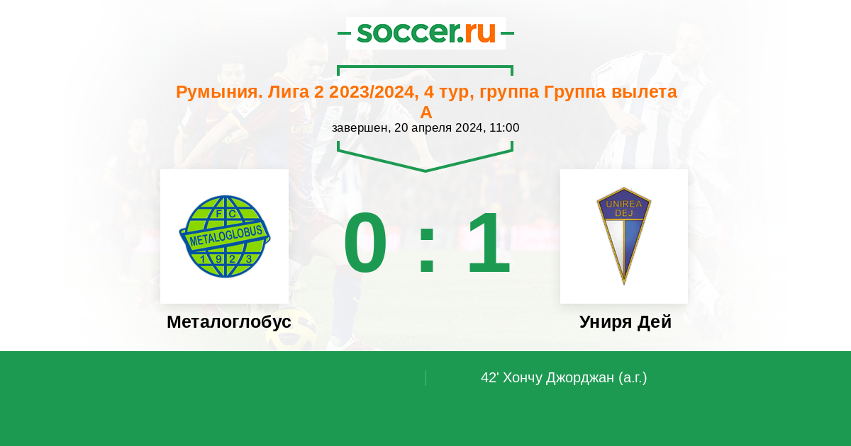 42' (0:1) Автогол Хончу Джорджан