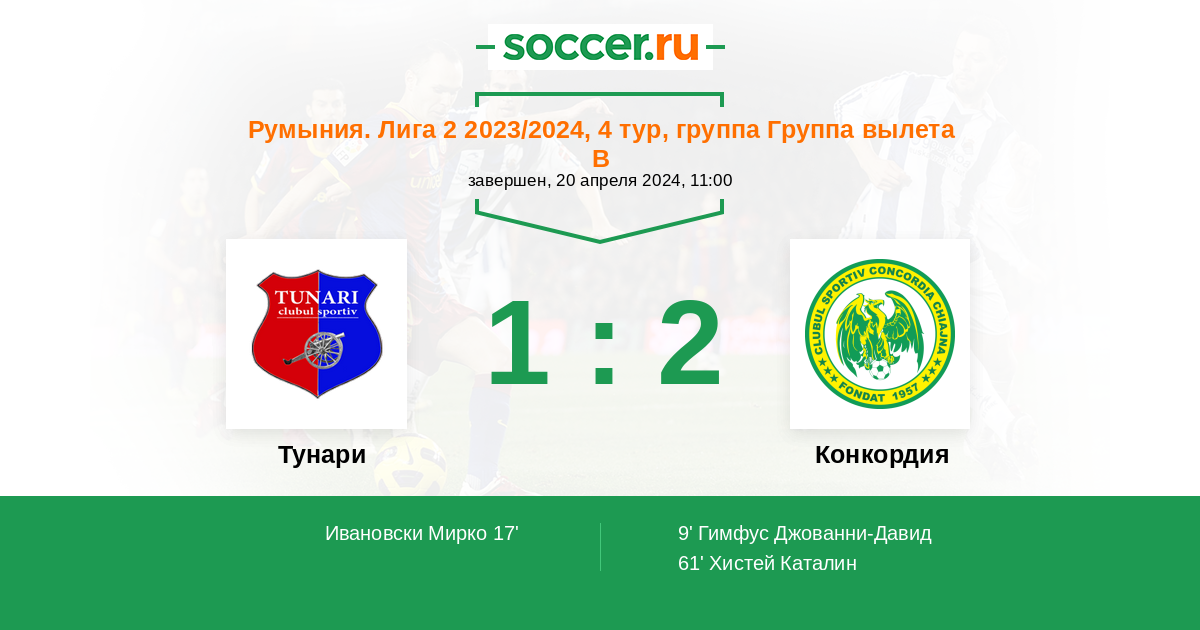 Протокол матча Тунари против Конкордия