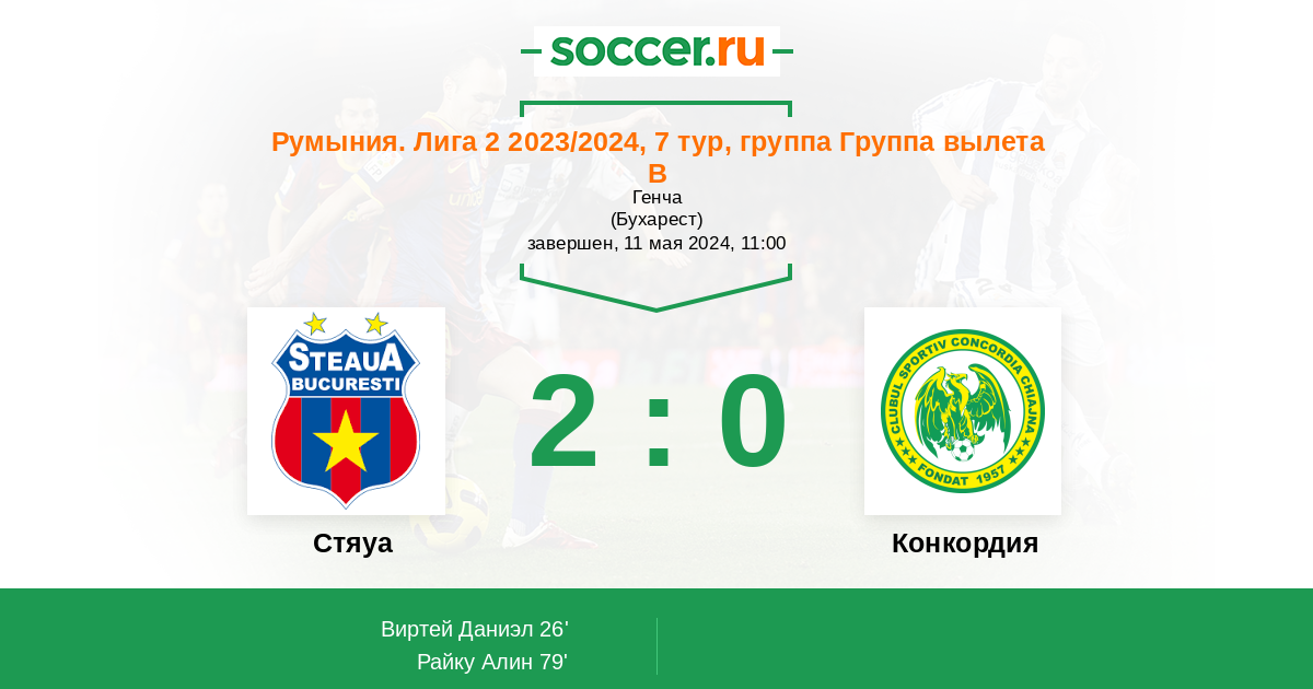 Протокол матча Стяуа против Конкордия