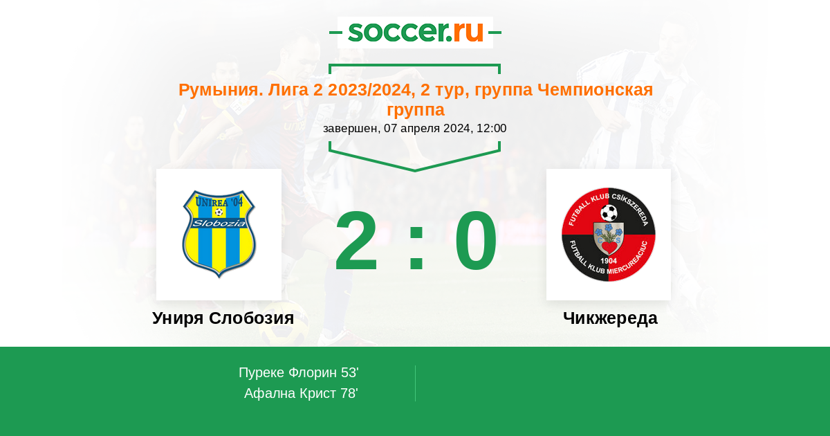 Протокол матча Униря Слобозия против Меркуря-Чук Чикжереда
