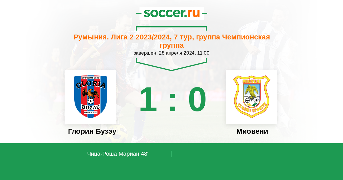 Протокол матча Глория Бузау против Миовени