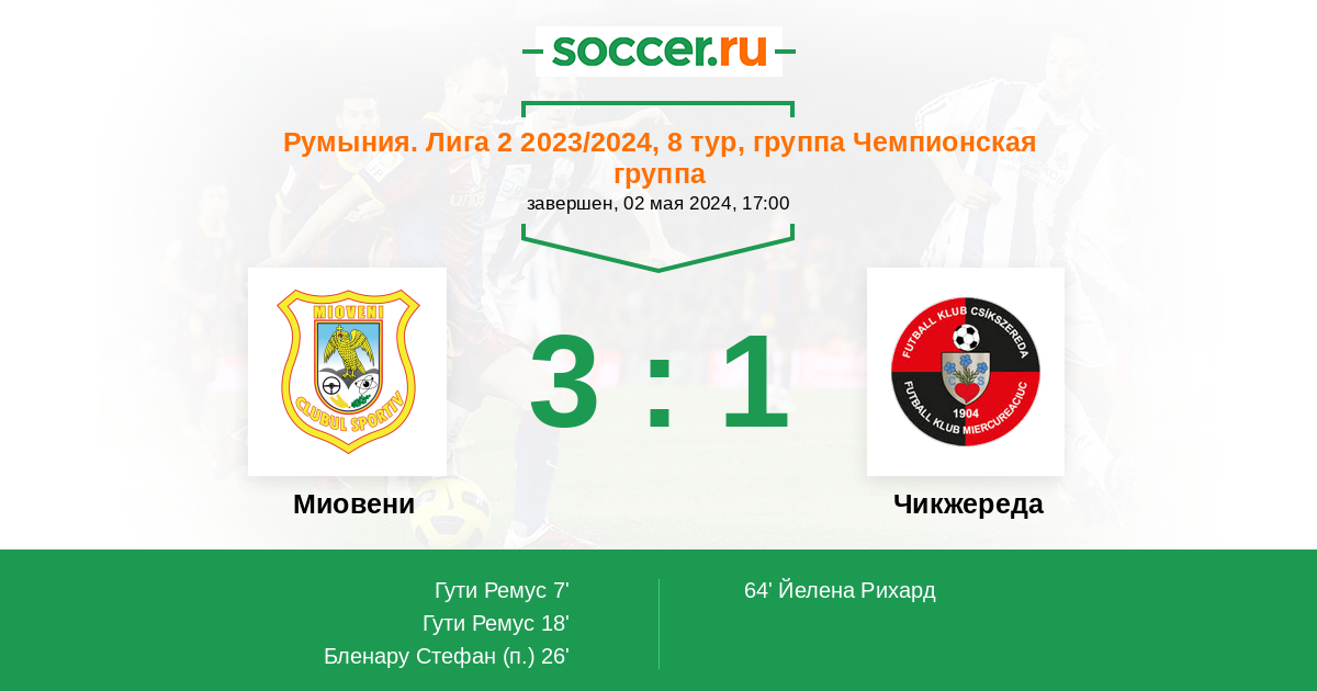 Протокол матча Миовени против Меркуря-Чук Чикжереда