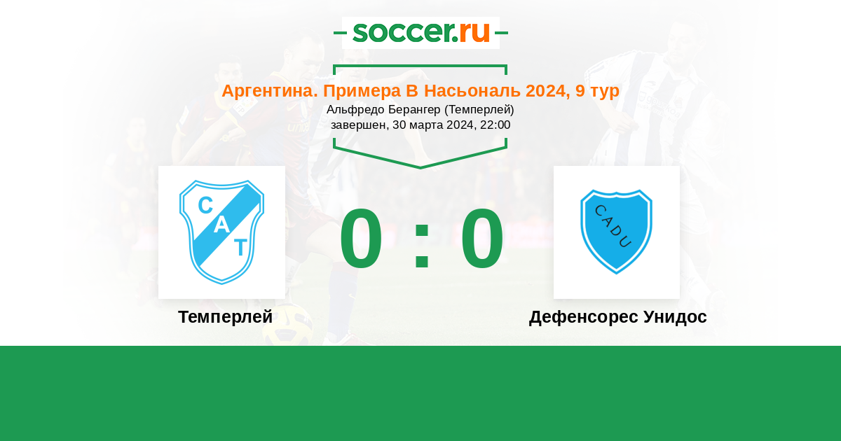 Протокол матча Темперлей против Дефенсорес Унидос