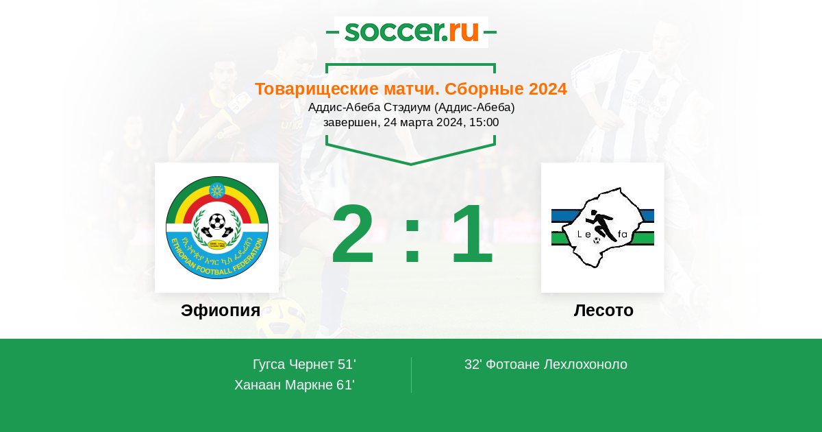 Протокол матча Эфиопия против Лесото