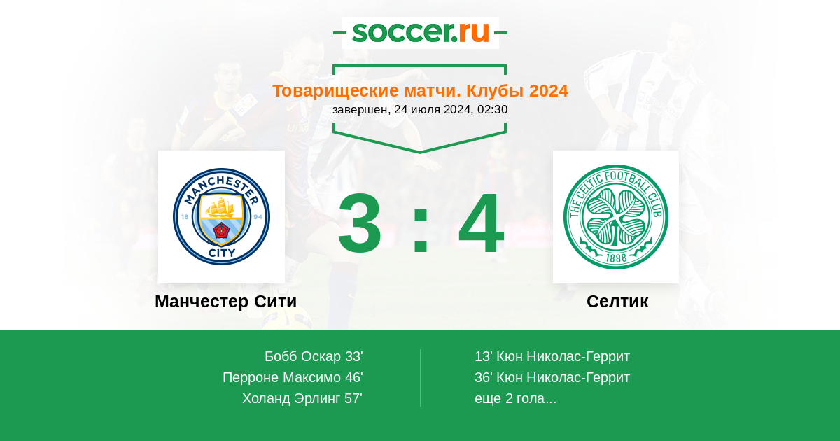 Протокол матча Манчестер Сити против Селтик