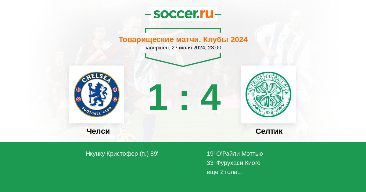 Протокол матча Челси против Селтик