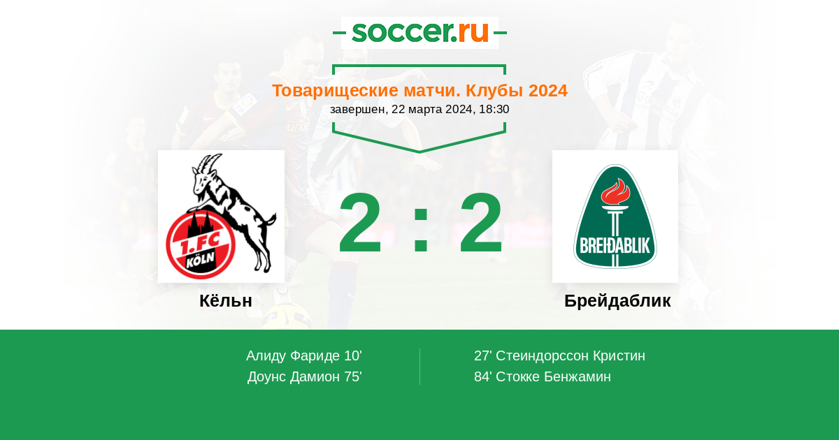 Протокол матча Кёльн против Брейдаблик