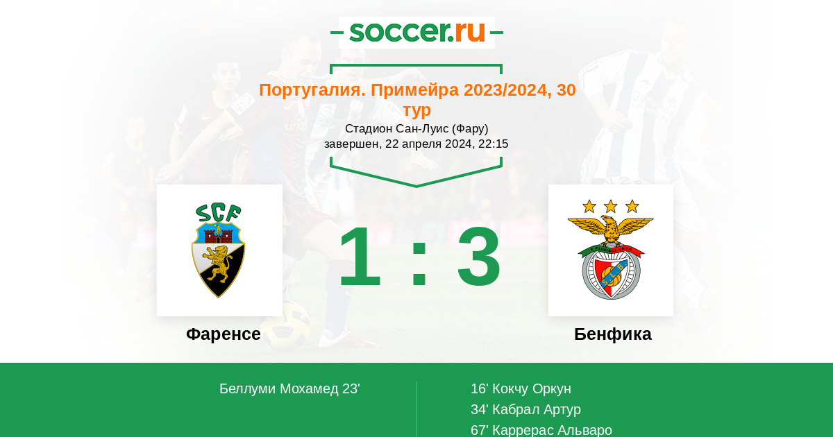 Протокол матча Фаренсе против Бенфика