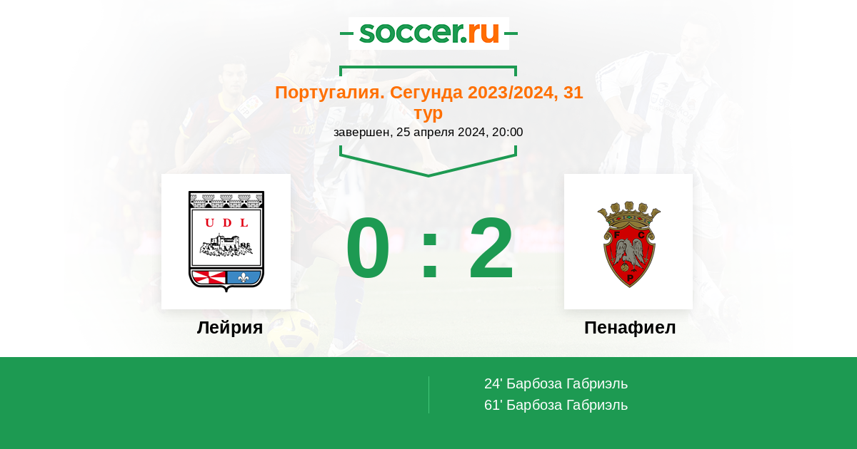 Протокол матча Лейрия против Пенафиел