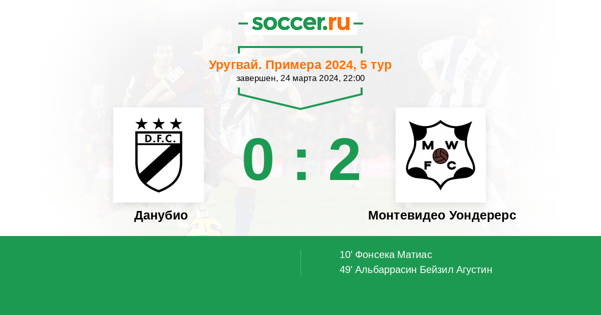 Протокол матча Данубио против Монтевидео Уондерерс