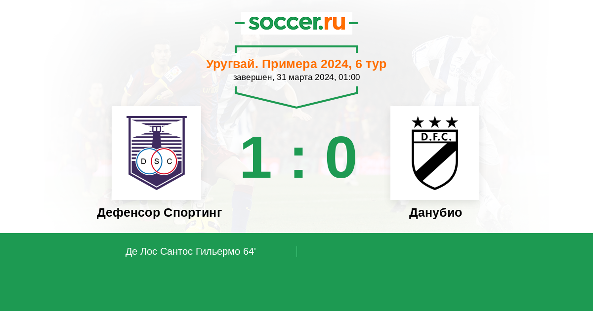 Протокол матча Дефенсор Спортинг против Данубио
