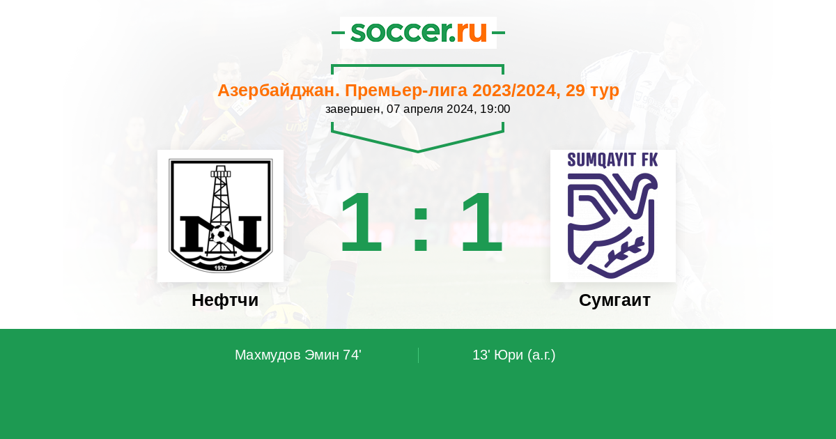 Протокол матча Нефтчи против Сумгаит