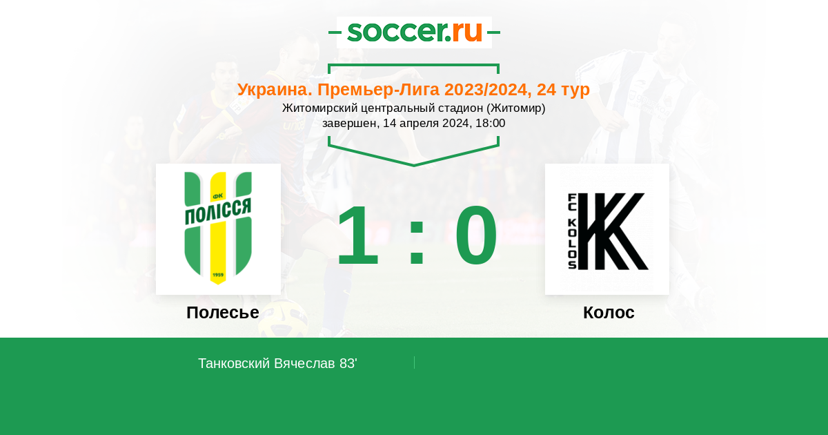 Протокол матча Полесье против Колос