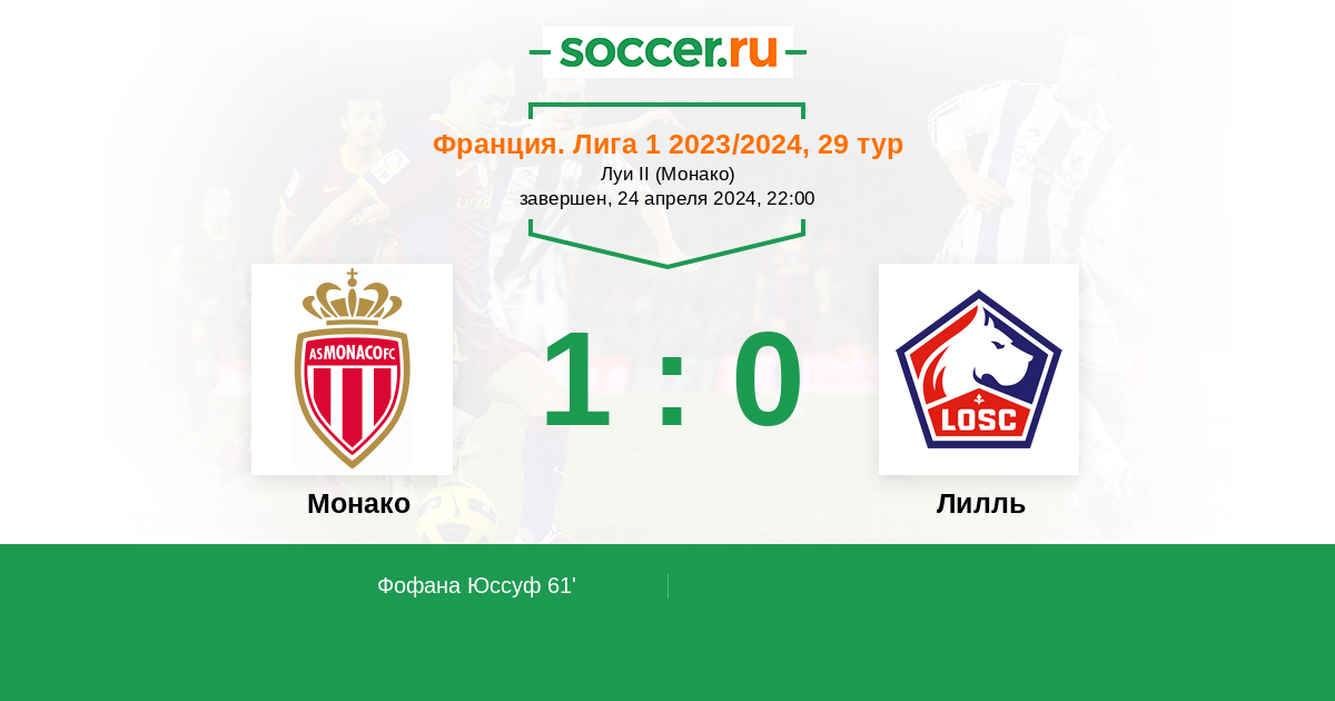 Лилль идет четвертым в таблице и является прямым конкурентом монегасков в борьбе за путевки в ЛЧ