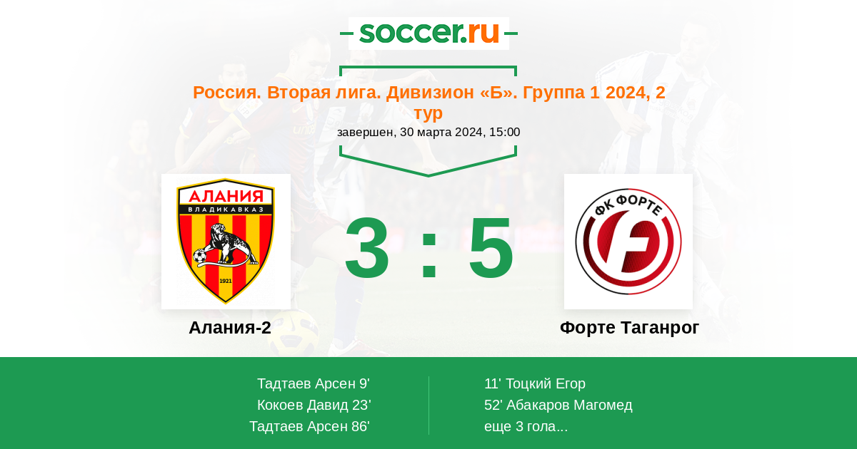 Протокол матча Алания-2 против Форте Таганрог