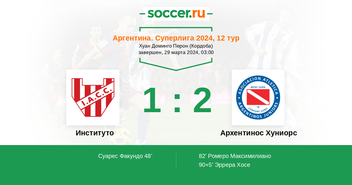 Протокол матча Институто против Архентинос Хуниорс