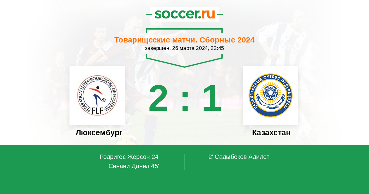 Протокол матча Люксембург против Казахстан
