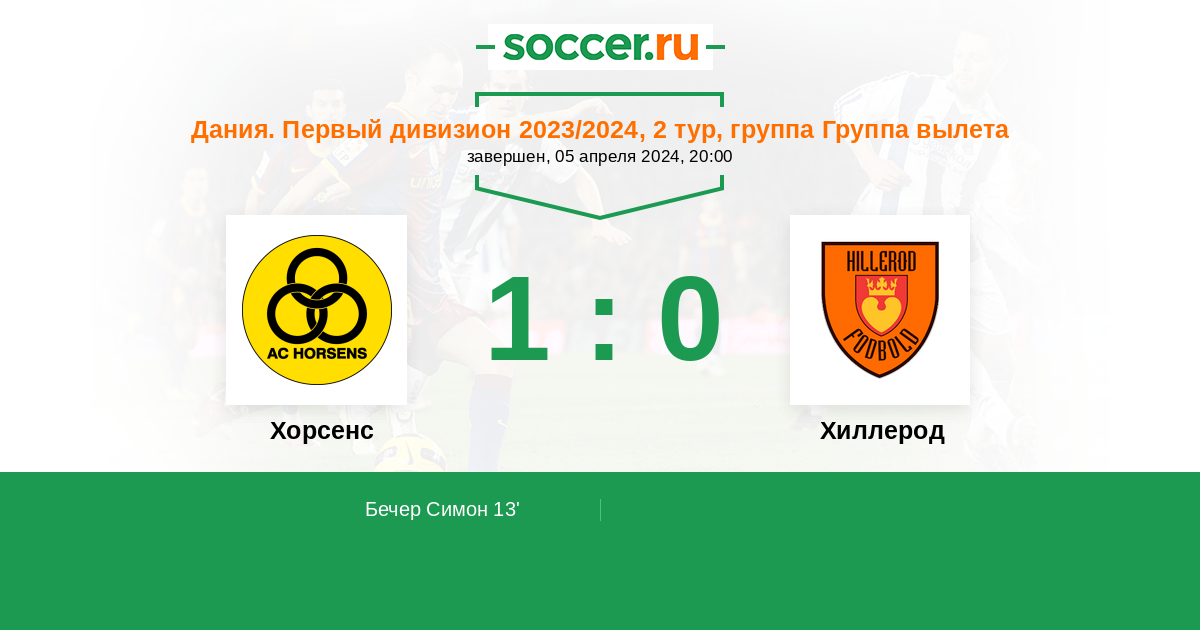 Протокол матча Хорсенс против Хиллерод