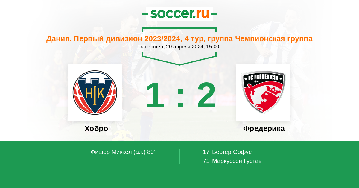Протокол матча Хобро против Фредерика