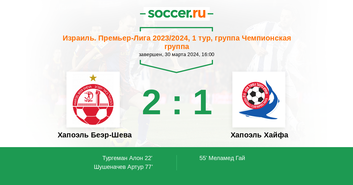 Протокол матча Хапоэль Беэр-Шева против Хапоэль Хайфа