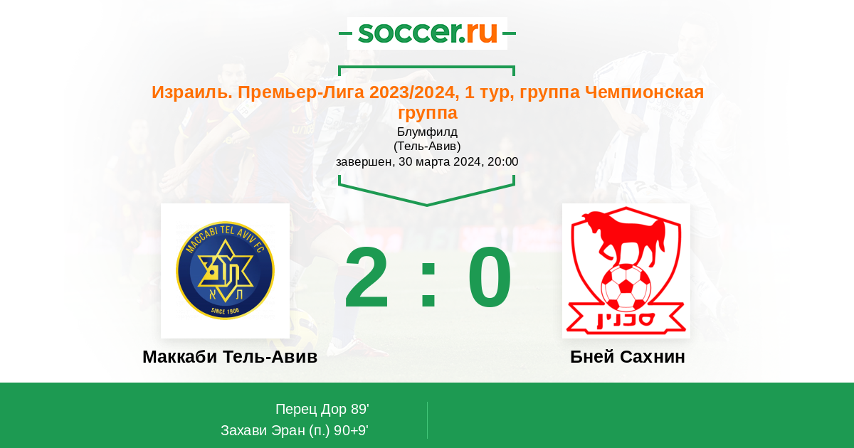 Протокол матча Маккаби Тель-Авив против Бней Сахнин